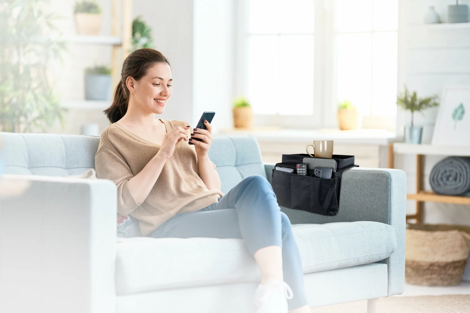 5 pockets designed for your necessities. You can put newspaper, magazines, iPad and tablet into the largest pockets, remote controls, eye-glasses, mobile phones and other portable devices into the four standard pockets, keep them handy whenever you need them.