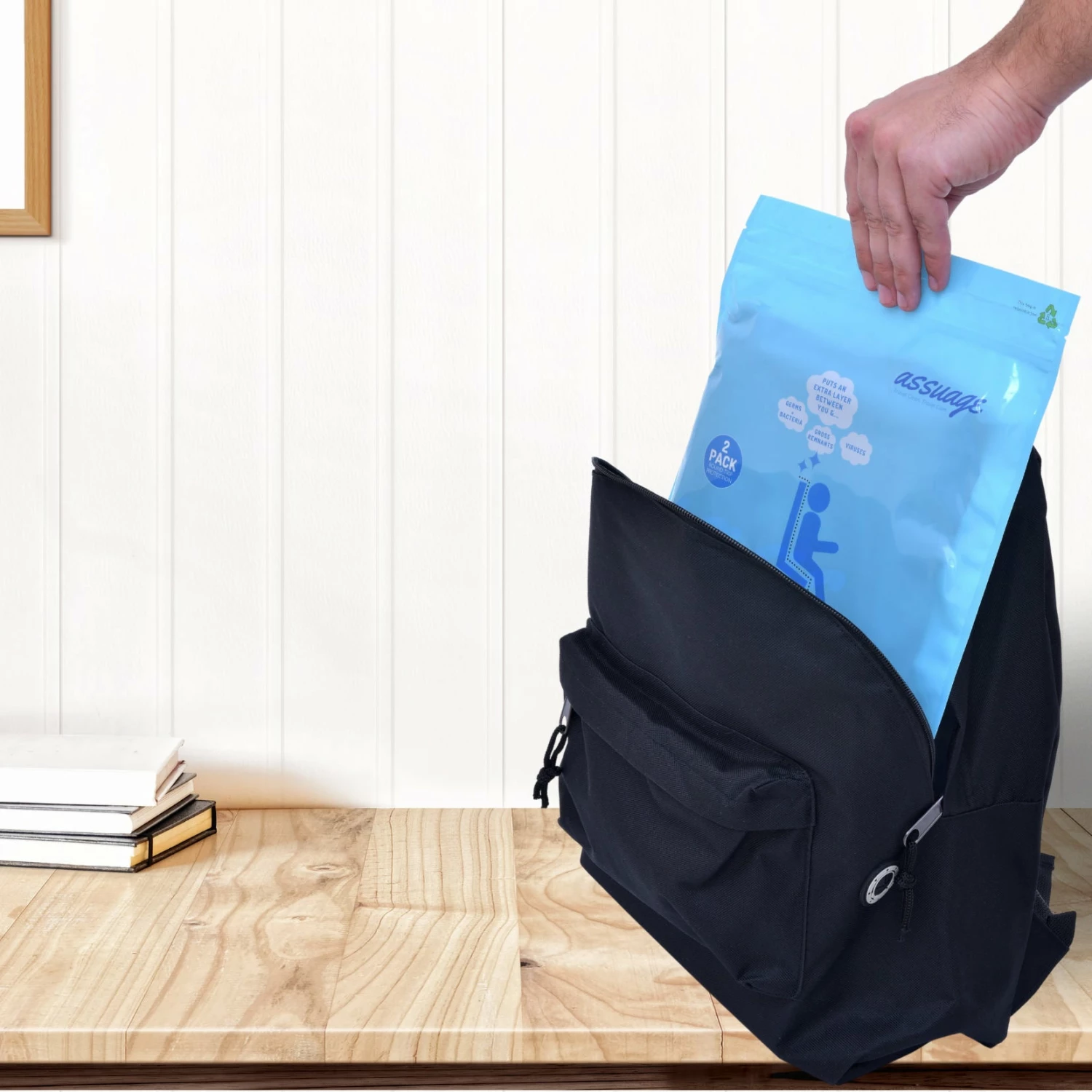 Single-Use seat protection thatβs environmentally friendly? Yes please! Seat Cover and packaging are 100% recyclable. Enjoy a clean place to sit wherever you go. Made of non-woven synthetic fabric. PLUS they come in a handy resealable pack of 2! They’re useful in Airplanes, Airports, Trains, Buses, Taxi, Rental Car, Offices, Schools, Waiting Rooms, Stadiums, Movie Theaters, Salons, Barbershops, and more.