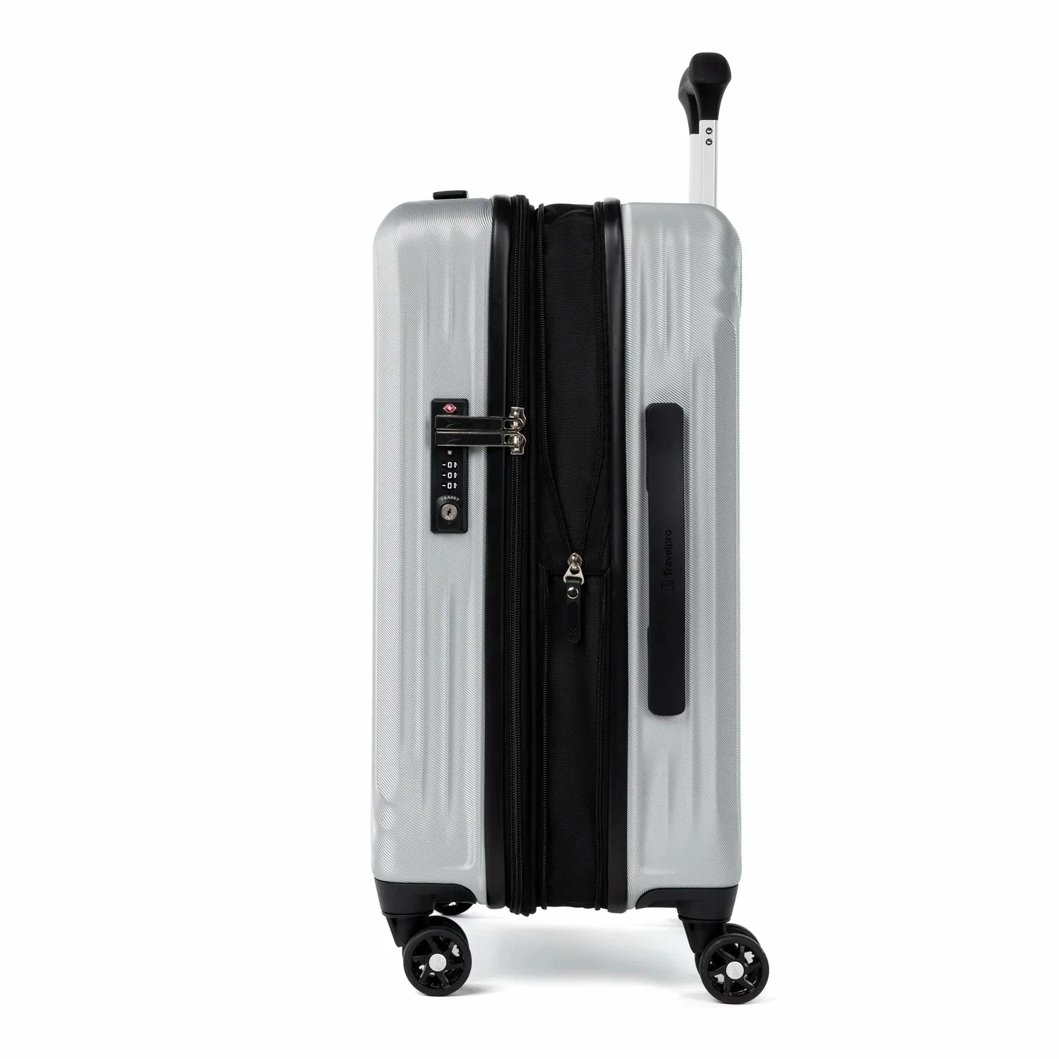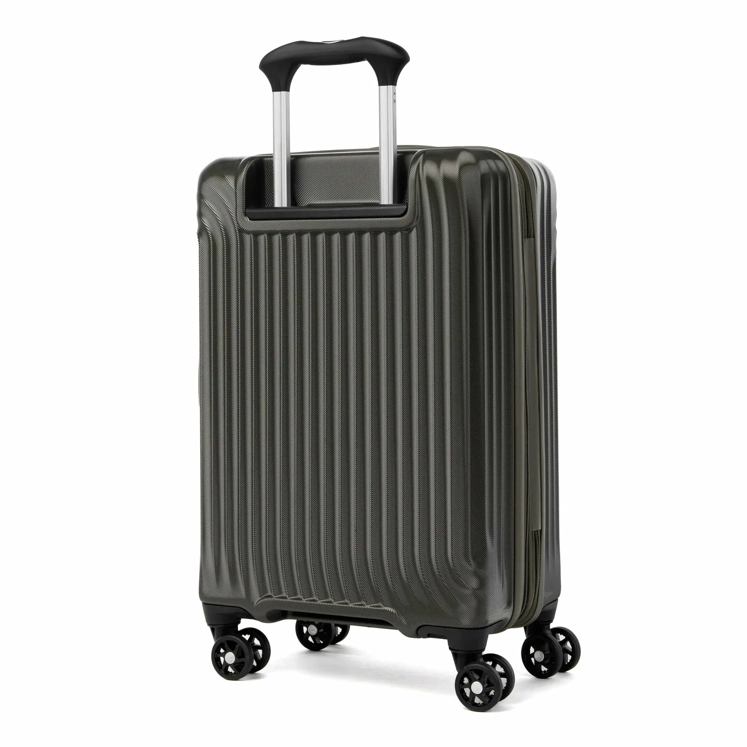 Travel Like A Pro® and glide with ease on eight smooth-gliding spinner wheels that rotate 360° led by a PowerScope Lite handle that locks in two positions (38” and 42.5”) for users of different heights. A patented Contour Grip with rubberized touch points makes maneuvering easy and comfortable.