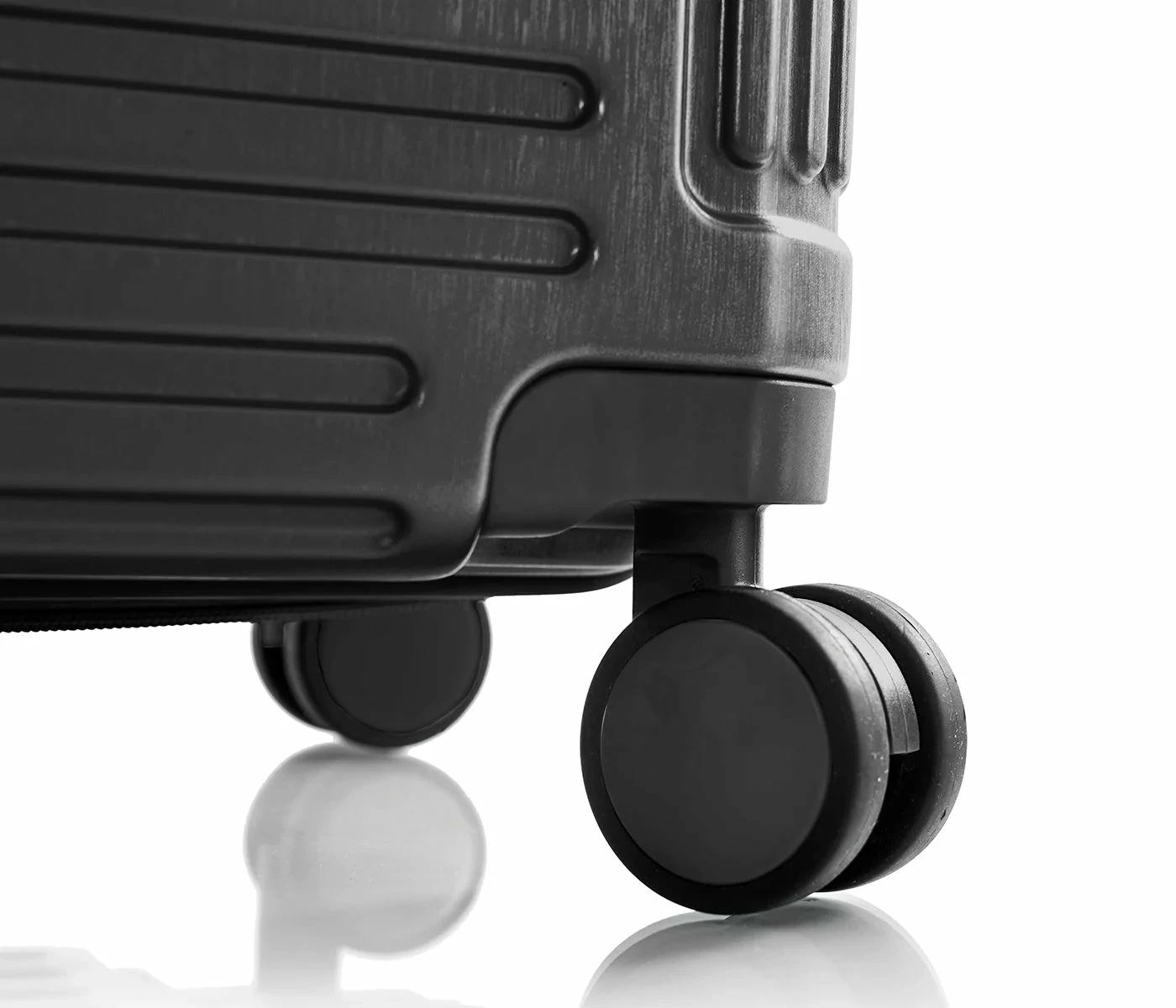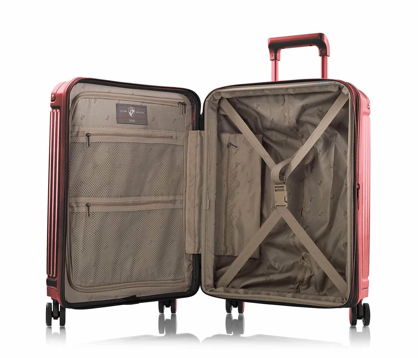 Edge is a 8 wheel Spinner luggage that is made from a Polycarbonate composite. To further enhance the durability of Edge luggage is the inclusion of the metal corner guards; keeps your luggage and valuables safe and secure. Polycarbonate is the same material used in the making of Bullet-proof glass. It is both durable and flexible so that when under stress, it flexes to absorb the impact and then afterward flexes back to its original shape.