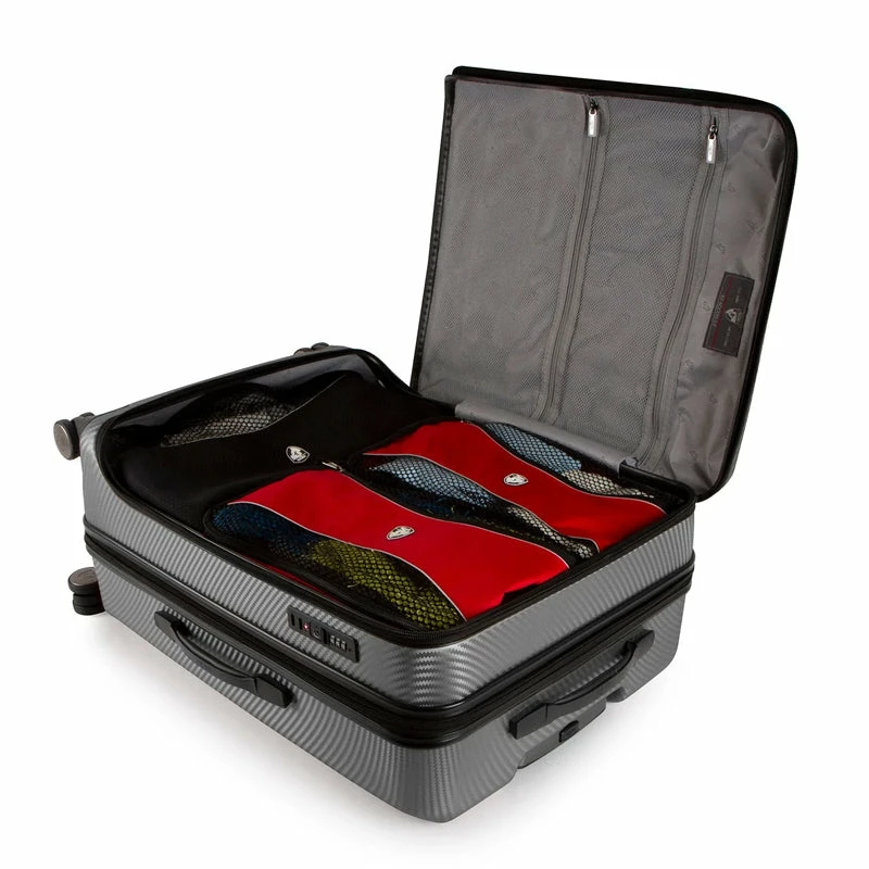 Unlike the traditional 50/50 split design found in most hardside luggage interiors, the EZ Access design features a Front Opening System which offers a full depth packing solution, ideal for those who prefer to pack on one side only.ย