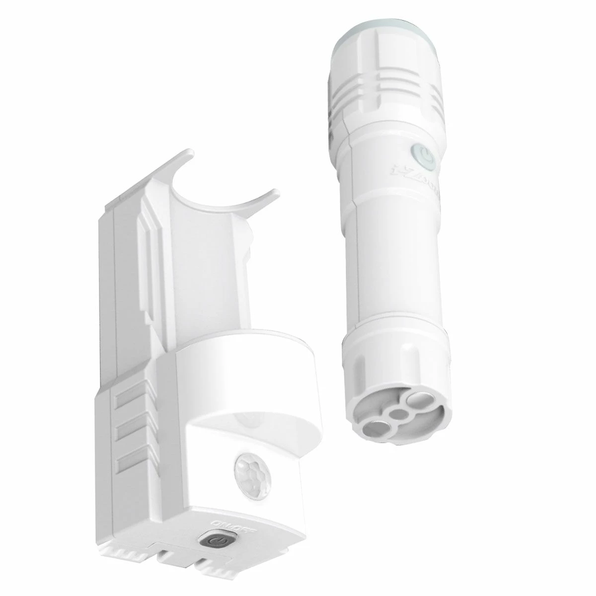 Always ready when you need light, this smart emergency flashlight stays charged in its base that plugs into a standard wall outlet. The base functions as a light- and motion-activated nightlight. Ideal for power outages, the base automatically can detect a power outage and activates light to guide you to the flashlight.