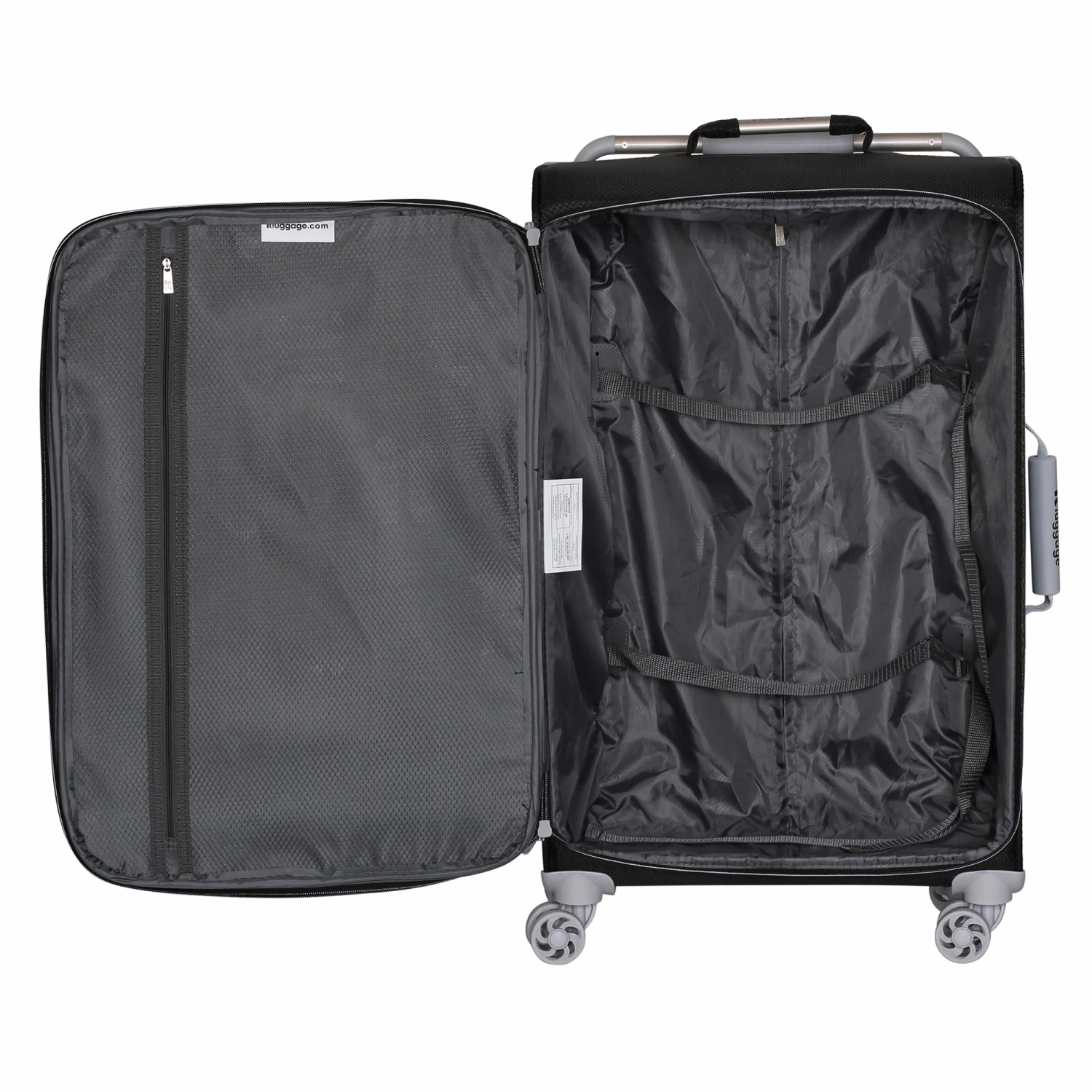 The it luggage Worldβs Lightest is constructed from high density polyester fabric and features a durable fiberglass frame with a sturdy locking handle system made from a single piece of aluminum. The spacious interior, lined with polyester, has two sets of adjustable straps for buckling clothes into place. Four double-wheeled rubberized casters and a 19″ telescoping and locking handle with a padded grip help the lightweight spinner luggage move through airports. Available in a range of colors to suit your personal sense of style, this all-inclusive spinner rolling carry-on offers style and storage while its featherweight design lets you travel with ease.
