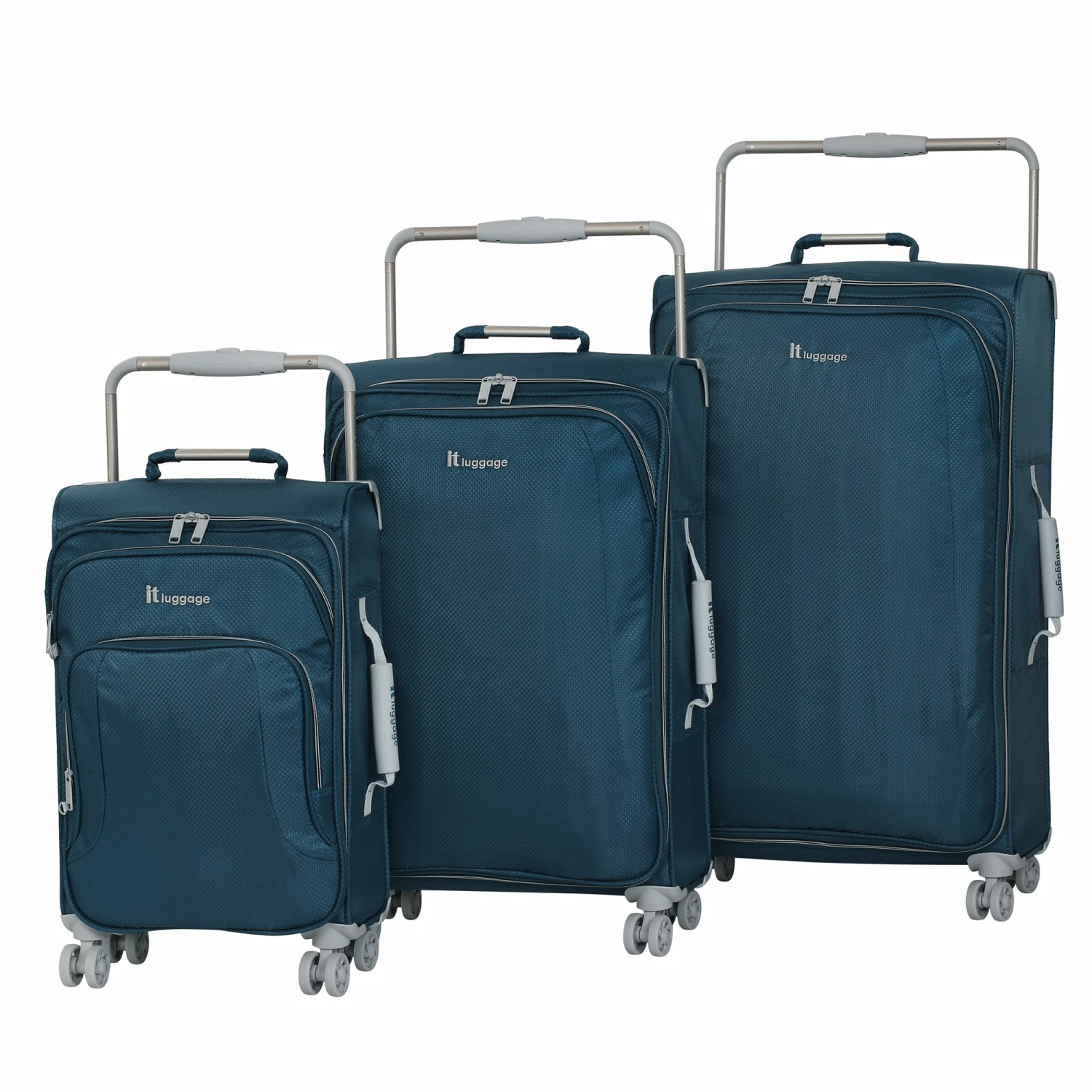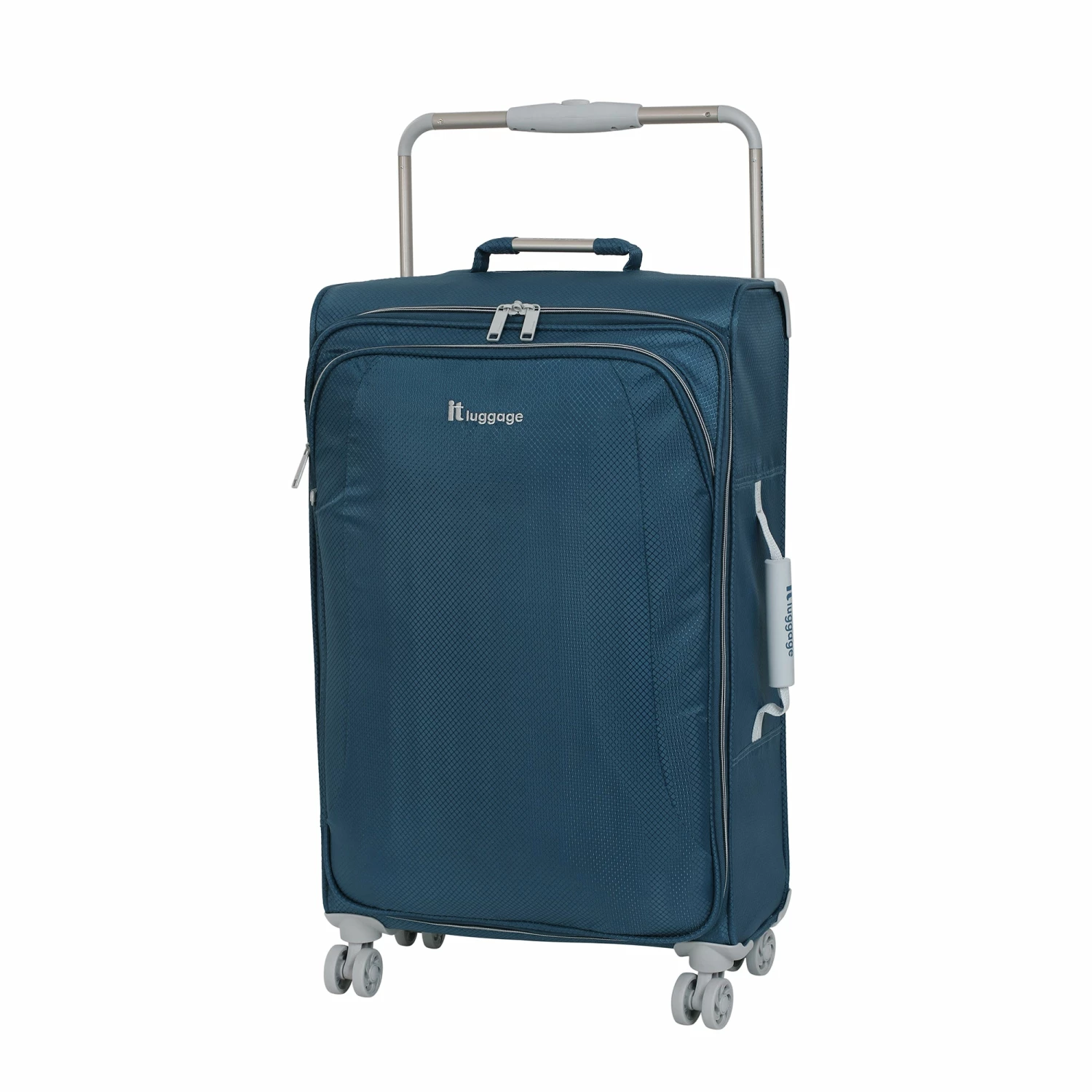 The it luggage Worldโs Lightest is constructed from high density polyester fabric and features a durable fiberglass frame with a sturdy locking handle system made from a single piece of aluminum. The spacious interior, lined with polyester, has two sets of adjustable straps for buckling clothes into place. Four double-wheeled rubberized casters and a 19″ telescoping and locking handle with a padded grip help the lightweight spinner luggage move through airports. Available in a range of colors to suit your personal sense of style, this all-inclusive spinner offers style and storage while its featherweight design lets you travel with ease.