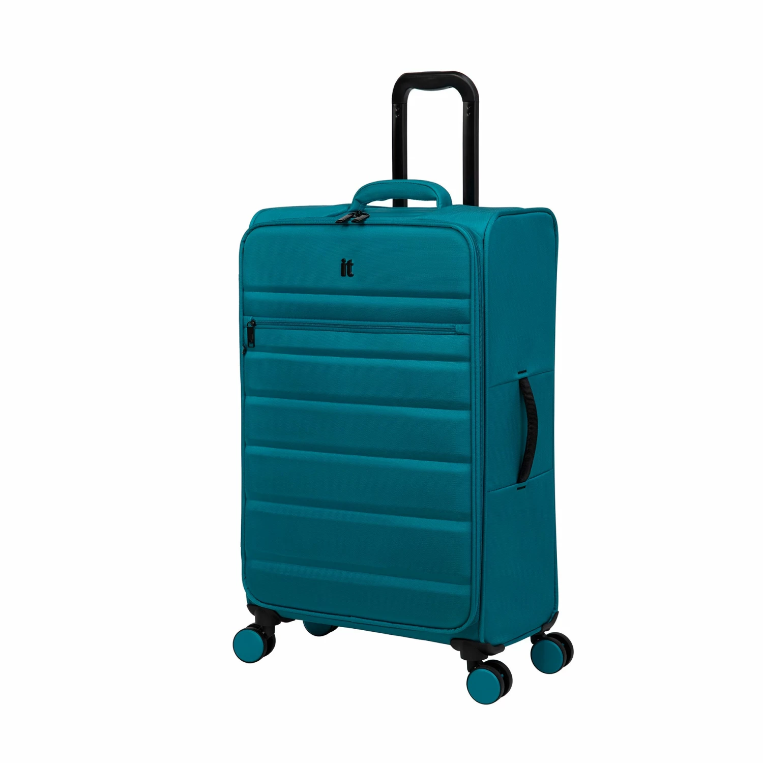 Travel confidently with the Accuracy Collection from IT Luggage. The aluminum trolley system helps to minimize the weight while maximizing strength as you glide to your destination on an 8-wheel rolling system offering excellent control and maneuverability. Featuring a unique EVA emboss, the front panel of each piece has a cushioned look to stand out from other cases. The large outer pocket allows easy access to your most essential travel items. The padded top and side handle make travel a breeze, and with a 10-year warranty you are assured quality in every suitcase. The Accuracy collection is going to make your next trip a seamless one.