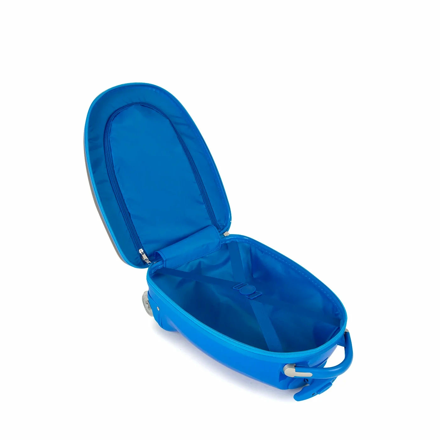 In creating a ‘High-end’ series for Hasbro, our designers incorporated several children-specific features. One of these is the internal ‘reversed-curved’ handle system that curves the handle inwards & upwards closer to the child, making it much more comfortable for the child – at a low height – to hold and navigate the case. The Patent Protected design of this case also allows the wheels to ‘protrude’ out. This protrusion keeps the case elevated, so that even when being rolled at a very low height off the floor, the wheels will be the only point of contact and the case will continue to roll with ease. The cases weigh in at a mere 3.7 lbs, and feature our inline skate wheels that make their rolling even smoother, so any child can easily wheel these fun cases around. They also have a zipper closure system, that when opened reveals a beautifully lined interior as well as a zippered divider for internal organization.