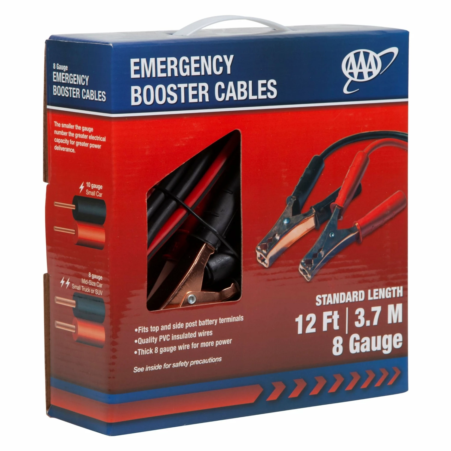 The 4324AAA booster cables comes backed by the best known name in the automotive industry, AAA. Unlike off the shelf cables, you know you are getting only the finest with AAA. With jumpstarting a car its key to remember; the smaller the gauge number the greater electrical capacity a cable can deliver, our thick 8 gauge wire gives you more power when charging a battery in need of a jump start. 12ft length cables gives you the right length wire to ensure that you are able to easily reach the battery of another vehicle when attempting to jump it. The clamps on these booster cables are the perfect size to fit the top and side post battery terminals to make jumping your car quick and easy, every time you need to jump a car. Our cables feature quality 8 gauge wire with insulated wires are ideal for jumping mid-size cars, small trucks or SUV, and can also jump things like motorcycles and ATVโs.