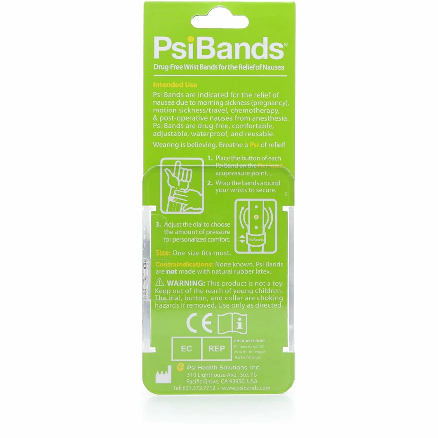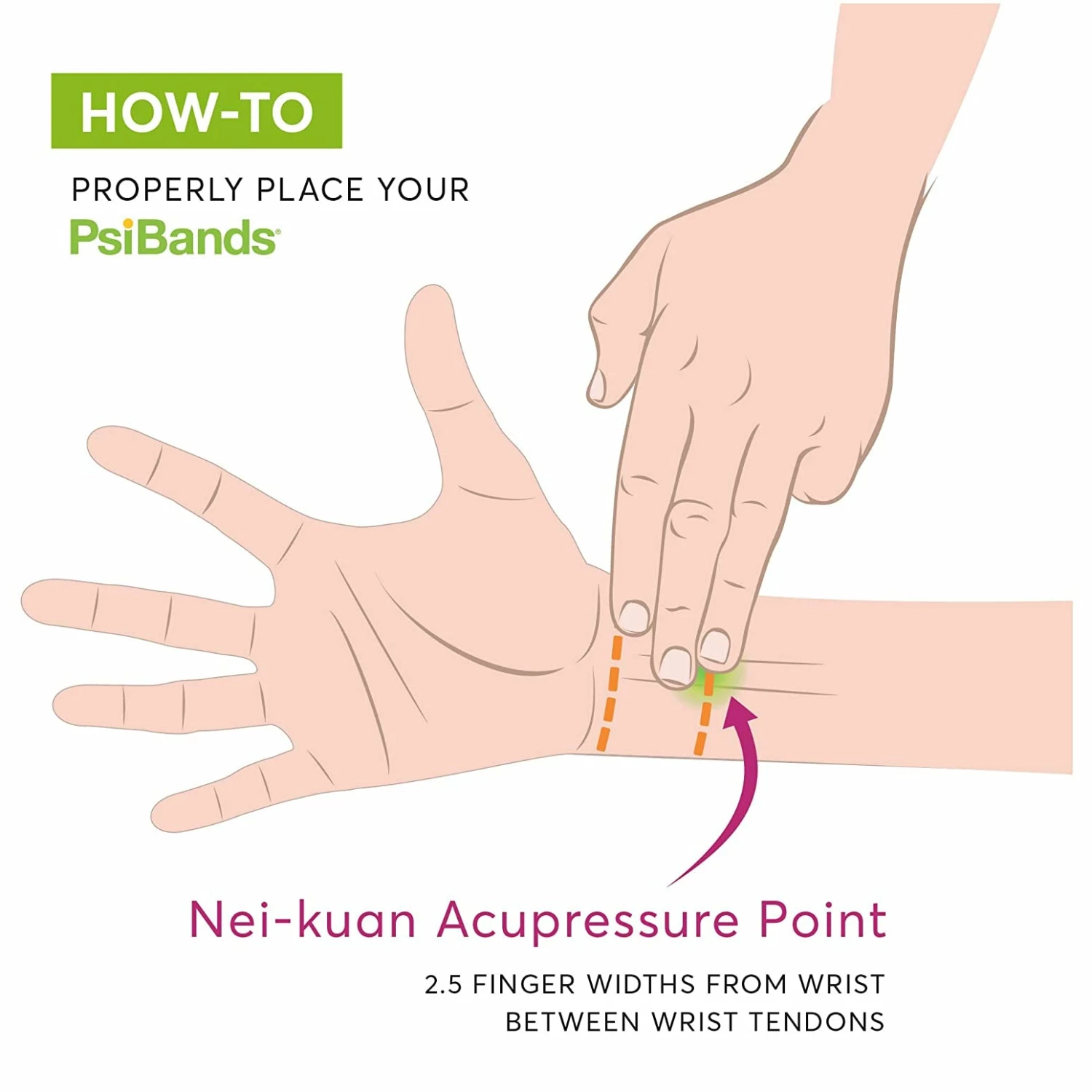 Acupressure has been around for more than 5,000 years and has been embraced because it’s effective, non-invasive and affordable. Psi Bands are designed to adjust around the wrist and at the acupressure point for a personalized and comfortable fit. They stay static on the Nei-Kuan acupressure point, the point that is clinically proven to relieve nausea due to motion sickness, morning sickness, anesthesia and chemotherapy.