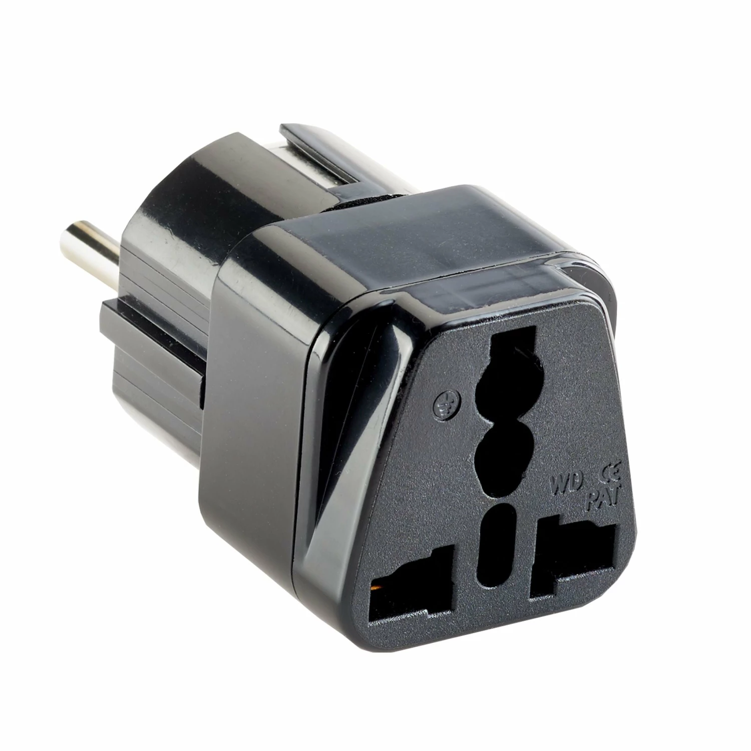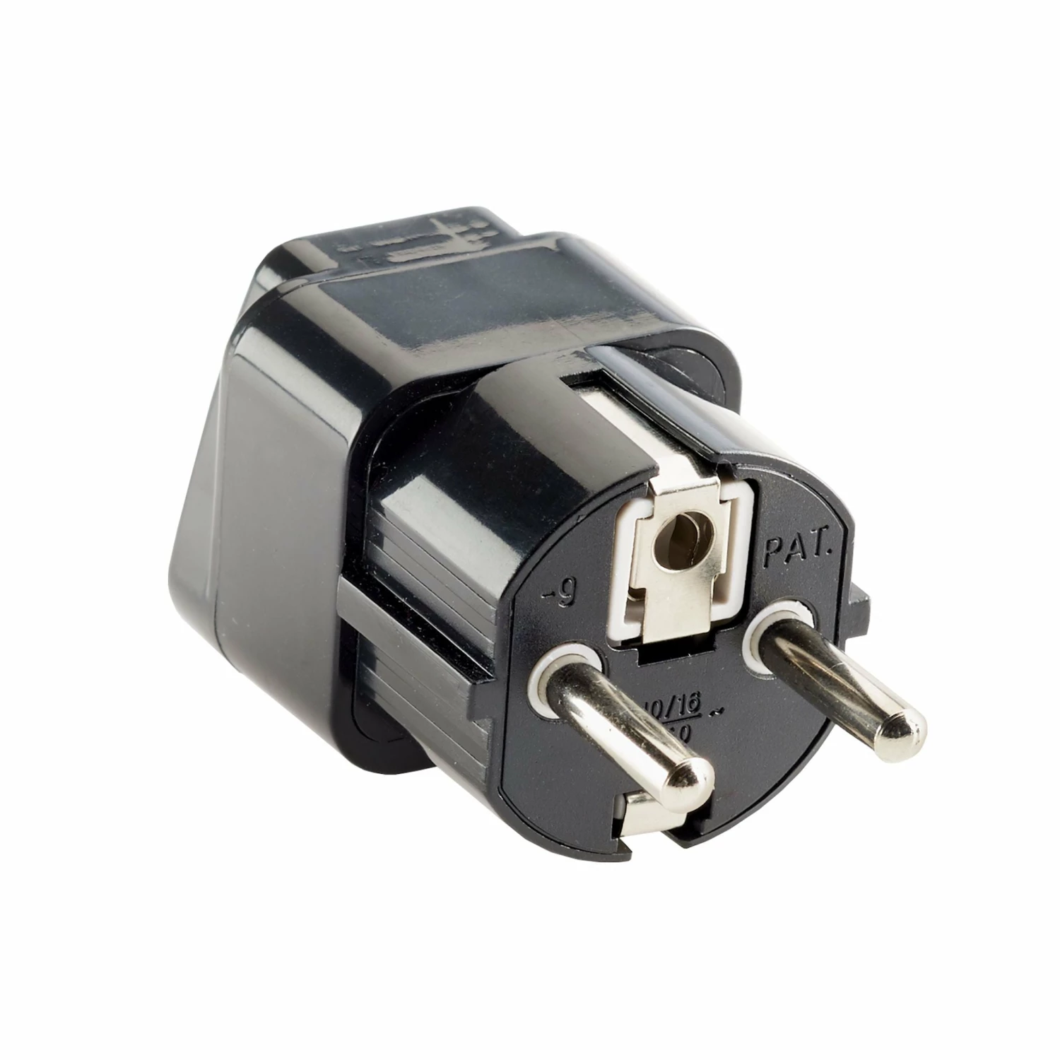 Grounded adapter for North American and International plugs for use in the EU, Asia and parts of Africa and the Caribbean.