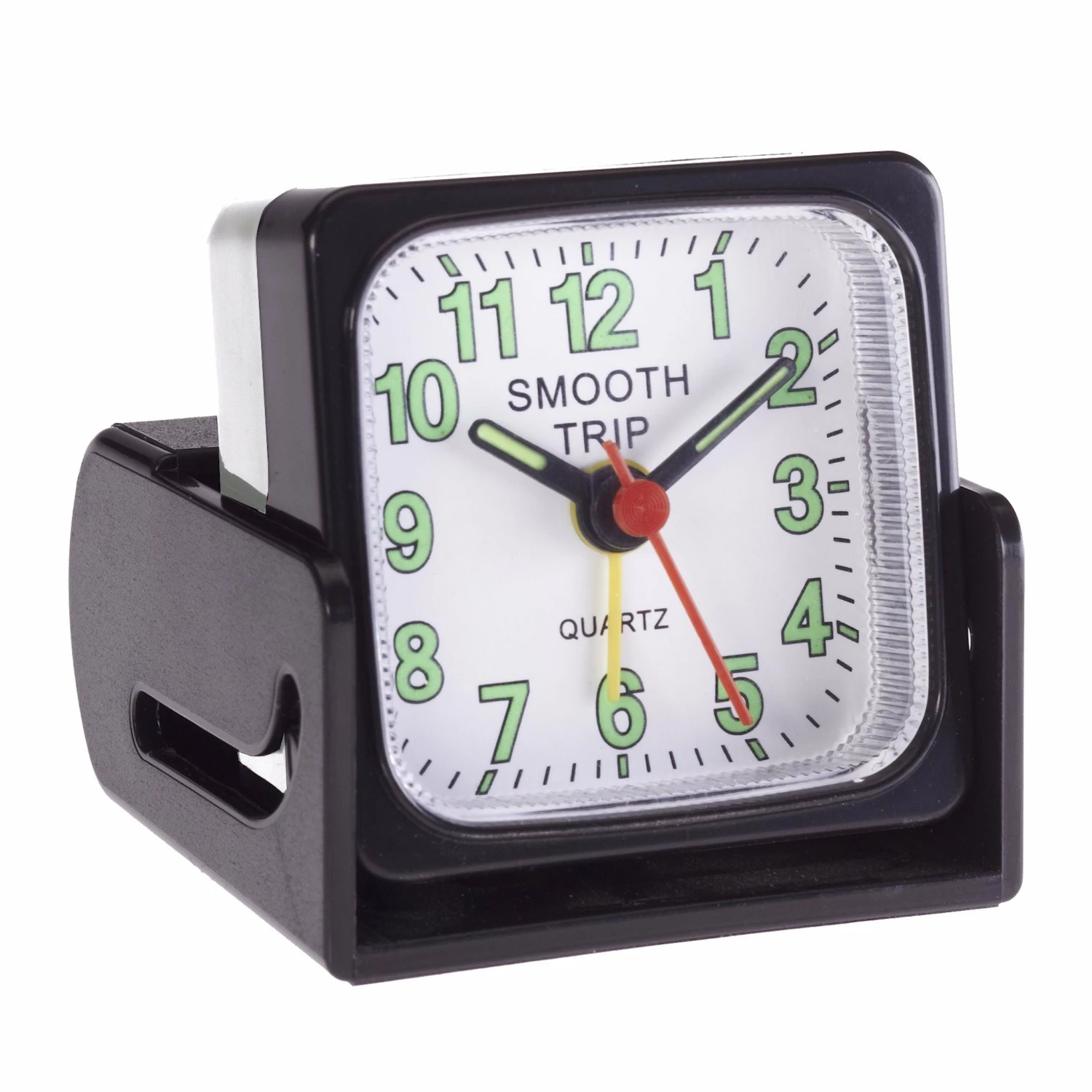 Easy-to-set compact travel alarm has a glow-in-the-dark face and hands with large numbers for easy nighttime viewing.