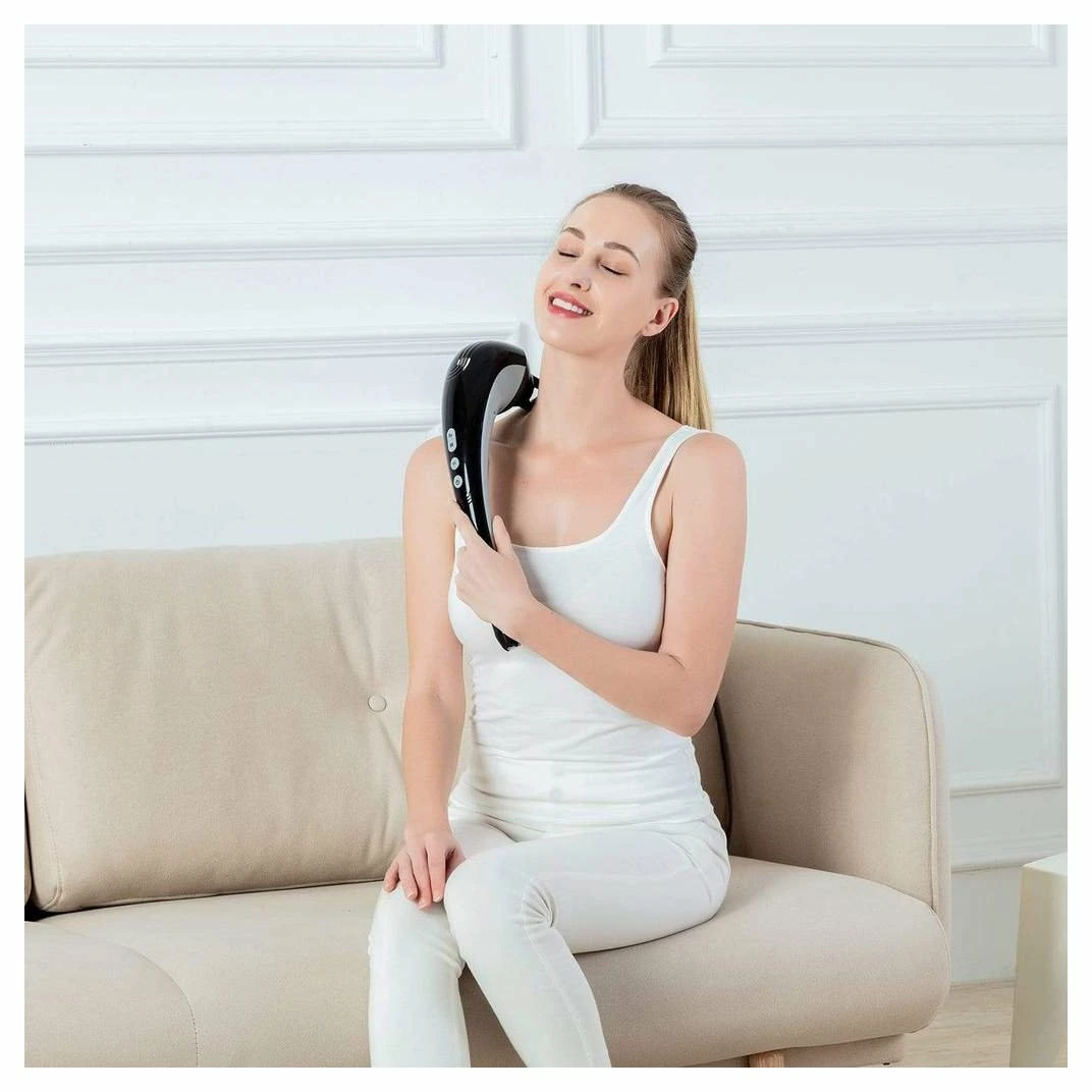 The handheld back massager is powered by rechargeable lithium-ion battery. No need to plug in while in use. It’s compact and cordless, allowing you to massage anywhere on-the-go. With the heated massage feature, it will spread warmth on the body to effectively relax tension and knots that built up in your muscles throughout the day.