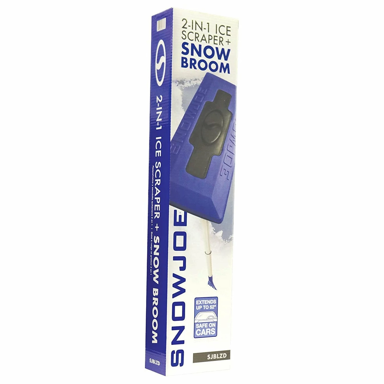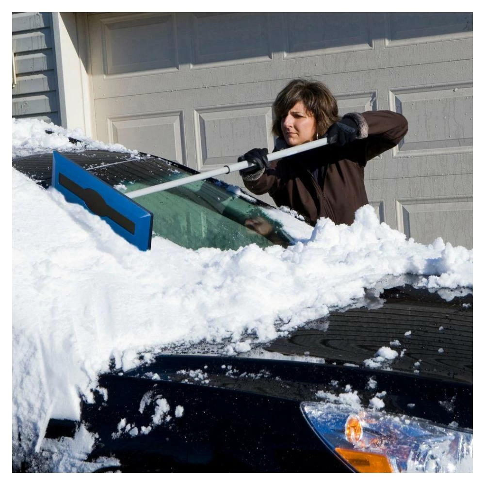 SNOW PROBLEM! The Snow Joe® Snow Broom model SJBLZD makes quick work out of the snow piled on the roof, hood, trunk or windshield of your car. Its patented dual-purpose design features a broom head on one end and a built-in ice scraper on the other, so you can quickly push heavy, wet snow off your car, then clear away the ice build-up on your windshield with just one tool. Made with a durable, reinforced, non-abrasive foam head, the Snow Broom safely and effectively sweeps snow off your car without scratching the glass surfaces. Plus, its telescoping pole extends from 33 to 52 inches to provide maximum reach with minimal strain. Weighing only 1.4 pounds, the Snow Broom is super easy to handle and stores neatly inside the trunk of your car with its built-in bracket holder. GET EQUIPPED® this winter with the Snow Joe® Snow Broom and clear out fast from tough winter messes