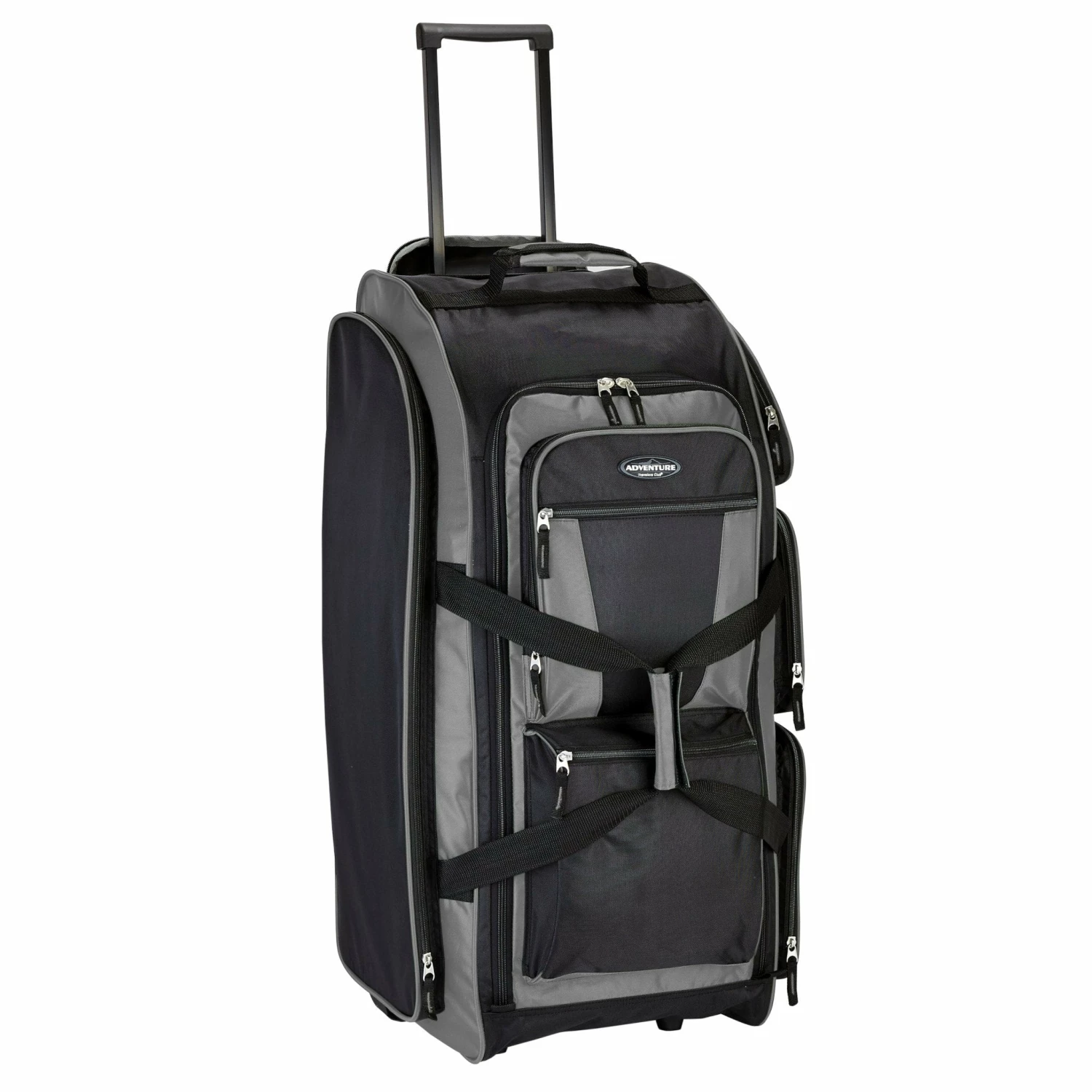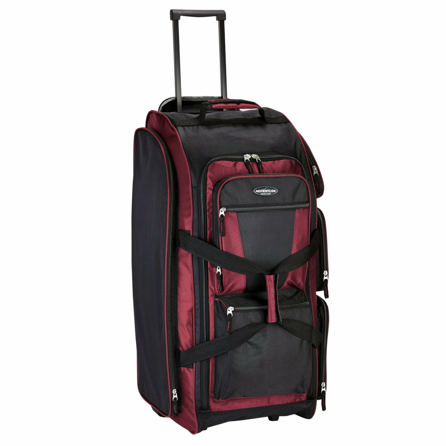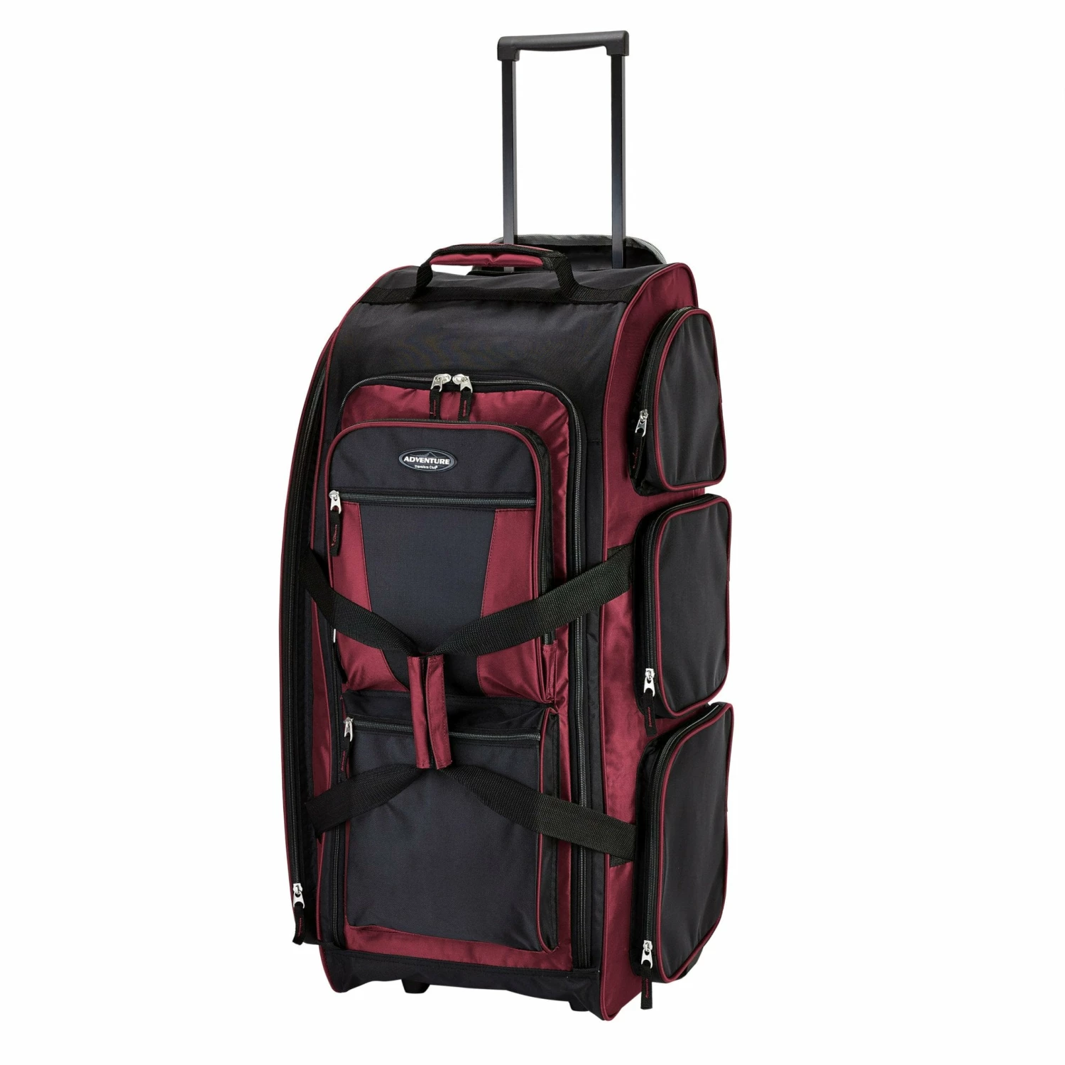 Keep all your travel necessities organized and stored away with this Travelers Club Adventure 30″ rolling upright duffel. This casual rolling duffel features seven packing pockets, a telescopic handle that secures inside its own pocket, and two in-line skate wheels. This piece is made of rich polyester material. Measures 30″ x 12″ x 13″.
