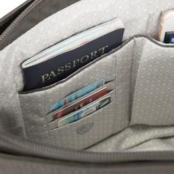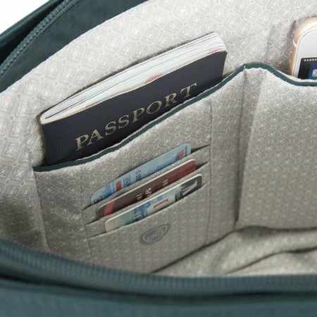 Now you can stop watching your bag and look up to see the world in front of you. Our built-in 5-Point Anti-Theft security system will protect your valuables from pickpockets and thieves. You’ll feel right at home anywhere in the world with the Essentials Patch Pocket Crossbody. Both functional and fashion forward! Lightweight, versatile, thoughtfully organized and inaccessible to thieves. Includes slash-resistant mesh barrier in all 4 sides and bottom body panels; slash-resistant and lock-down strap; locking compartments; and RFID blocking organizer.