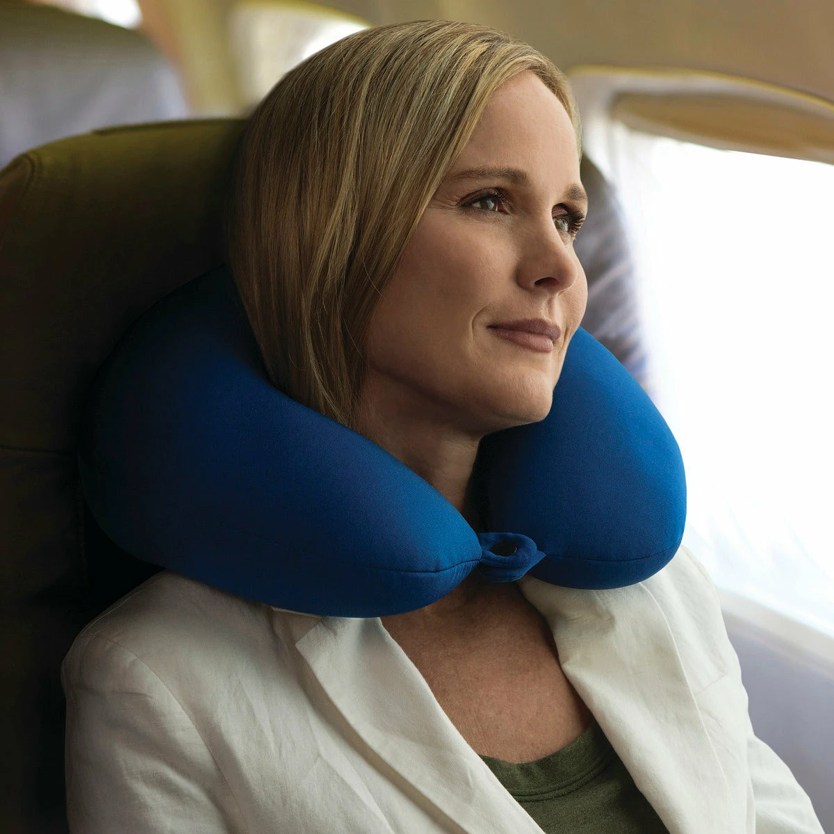 Our ultra-small polystyrene beads will give you the relaxing support you need and will conform to your every position. These beads will not crush. It allows you to secure the pillow around your neck to help prevent your head from falling forward. Simply snap around the handle of your luggage or to your backpack. This pillow can double as a lumbar support pillow. Use it frontward like a massage table pillow! Simply close the snap and rest your face forward into the pillow. Our pillow is equally comfortable on the couch or on the bed!