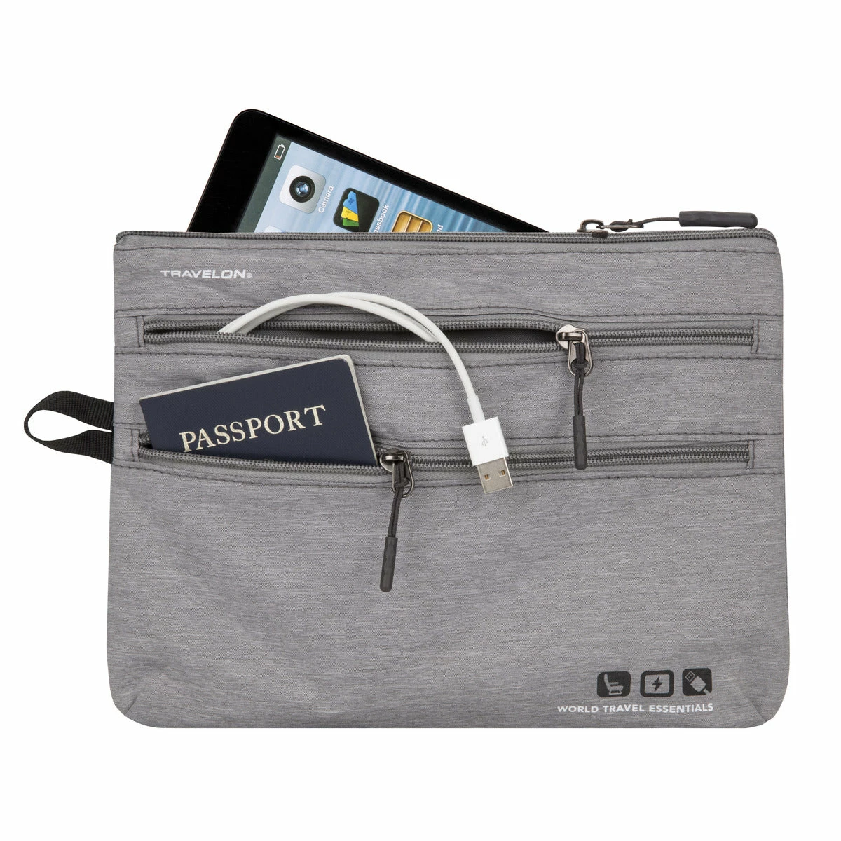 The ultimate in sanitary guarding your tablet wherever you go, the Seat Pack Organizer offers you a convenient, hands-free way to watch and work on the go. Holds your tablet and supporting tech all in one place, reducing your work efforts. Hand loop allows you to hang your tablet for easier viewing. Durable material is weather-resistant and PVC is wipeable with sanitizer sheets. World Travel Essentials redefines packability with some serious capacity gear to help keep you going without compromise.