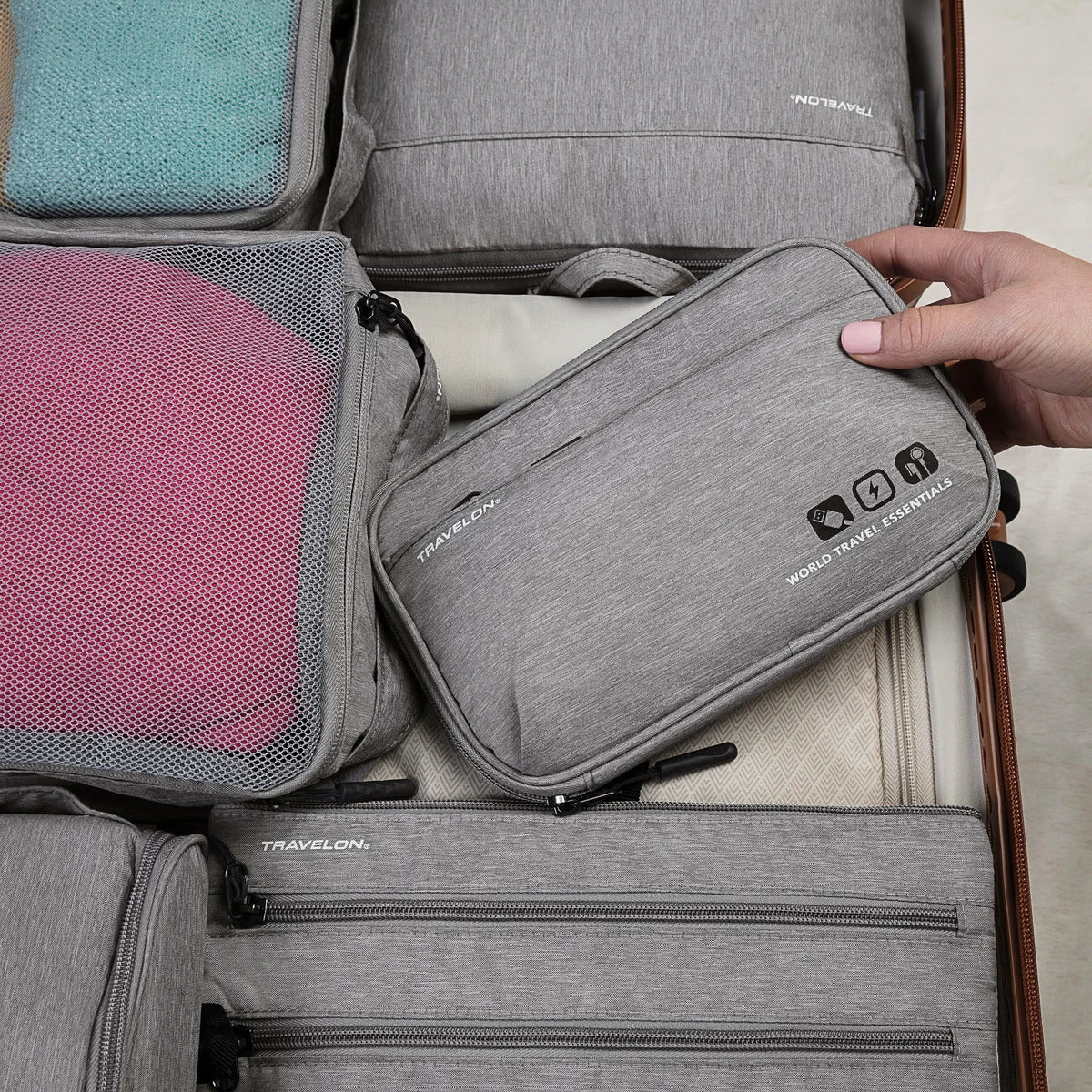 Travel without limits equipped with our advanced seriesWorld Travel Essentials (WTE), gear that solves packing problems. Our premium Tech Organizer is thoughtfully portable, creates more ordered space and takes up the least amount effort on your journey. Durable material is weatherproof and wipeable.World Travel Essentials redefines packability with some serious capacity gear that keeps you going without compromise.