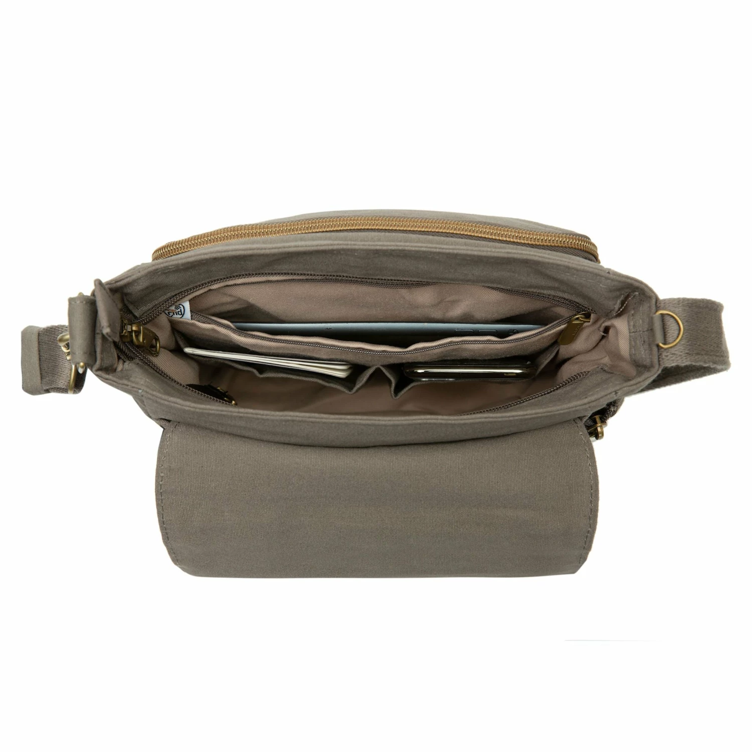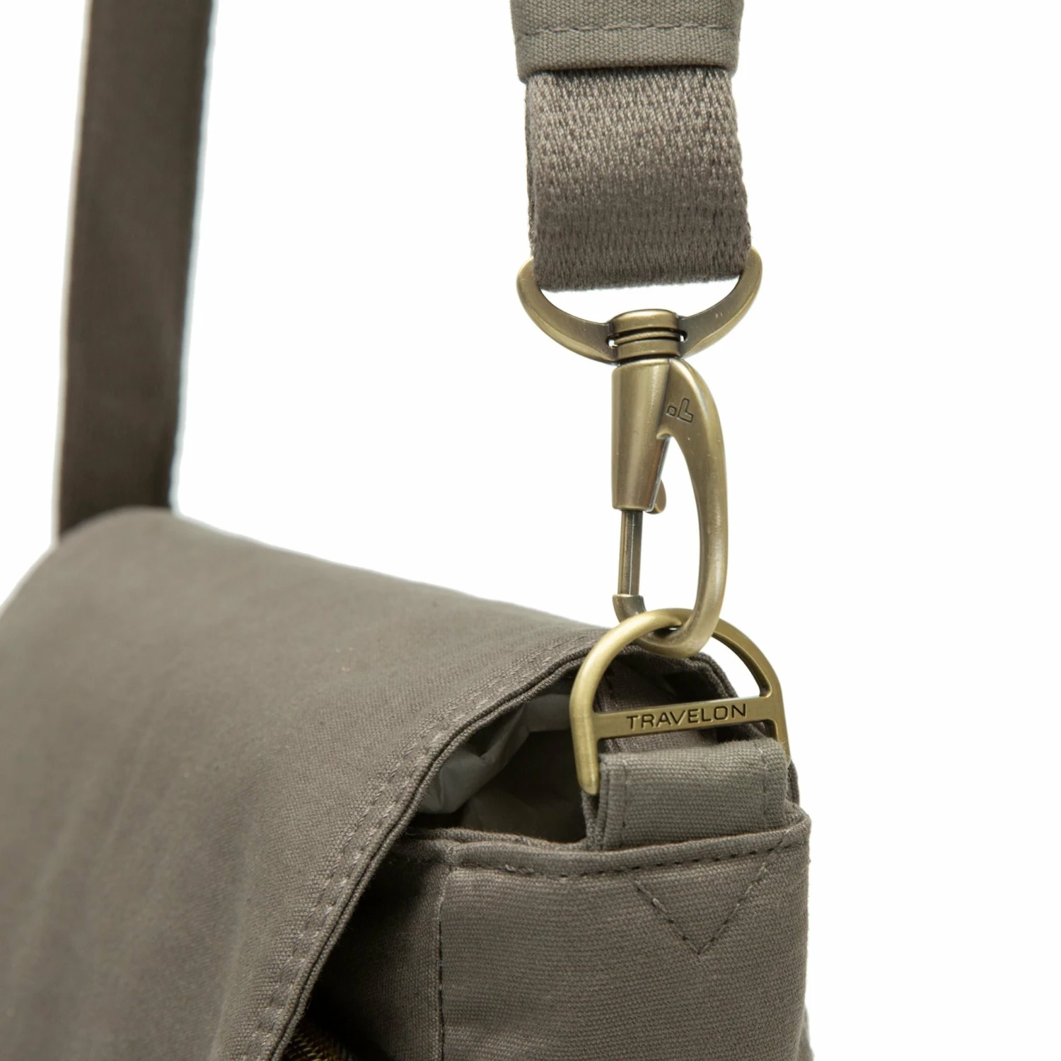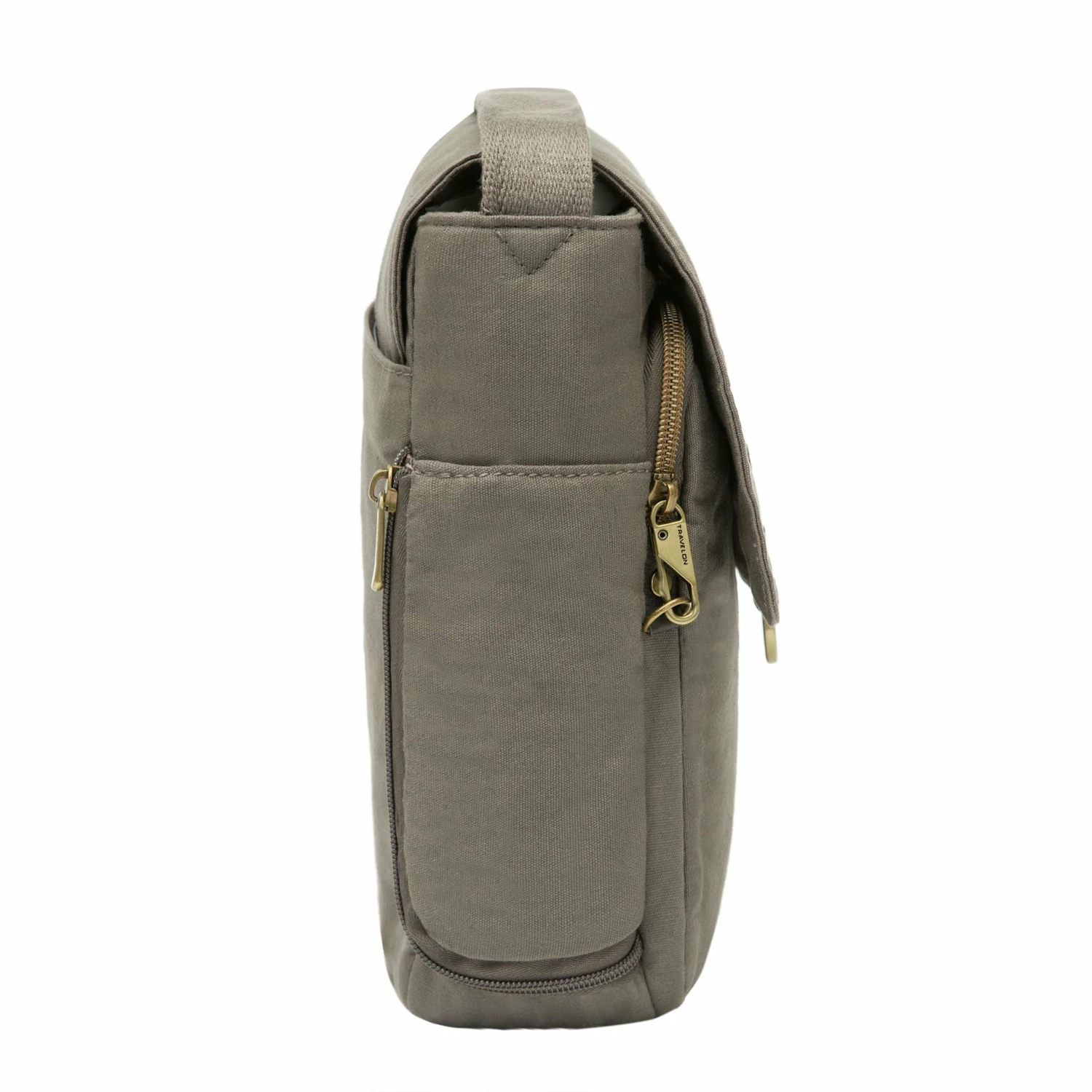 Authentic, vintage styling with added security. The Courier Tour bag is both iconic and versatile with a distinct and easy look. A minimalist dream, functional and durable, made of water and dirt-resistant canvas with genuine leather accents, antique brass hardware look, thoughtful organizational features throughout, and built-in security system. Now you can stop watching your bag and look up to see the world in front of you. Travelon’s built-in 5-Point Anti-Theft security system will protect your valuables from pickpockets and thieves. Includes slash-resistant mesh barrier in all 4 sides and bottom body panels; slash-resistant and lock-down strap; locking compartments, and RFID blocking organizer. Travelon packs your bag with peace of mind.