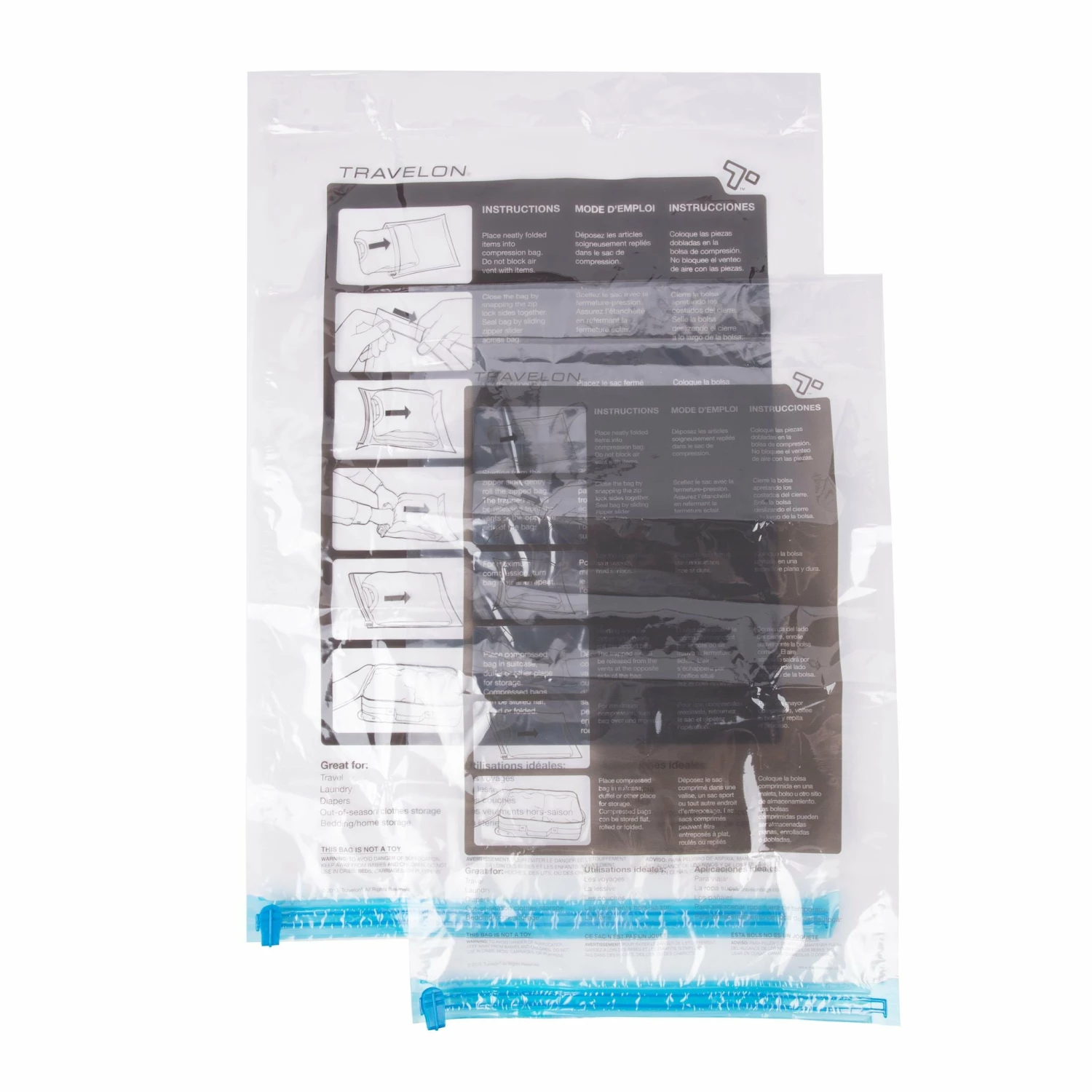 Using TRAVELON Compression Packing Bags will change the way you pack forever. Remove excess air from bulky garments to save up to 80% of your packing volume. From the beginning of your journey to getting your dirty laundry home without mixing it with the rest of your stuff, and when you get home you’ll want to keep reusing your TRAVELON Compression Packing Bags for one space-saving opportunity to the next.