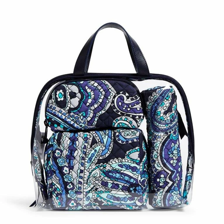 Vera Bradley’s iconic styles are a modern twist on their classic silhouettes, refreshed with added functionality. Sometimes when you go on a trip, you have a lot of smaller items to corral. This set of cosmetic bags is there for you so that you can keep your hair ties tidy and your cosmetics contained. This clear PVC cosmetic bag contains three smaller cotton cosmetic bags.